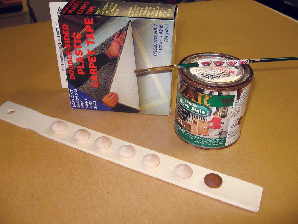 Finishing the plugs for covering screw holes is a pain. When you run a brush or rag over them after they’re installed, they’ll probably cause the finish to run or drip. Finishing them before they’re installed is the answer, but …