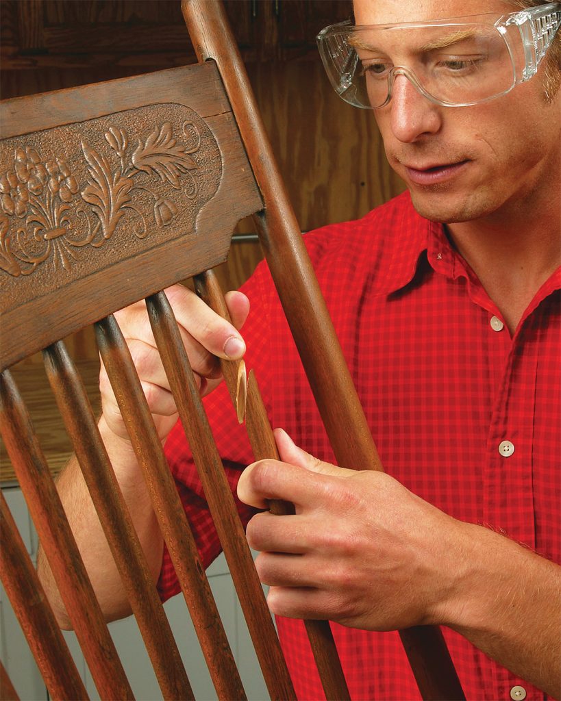 A broken spindle or chair rung can be removed well enough. But how do you get the repaired or new part back in without major disassembly? The answer is a...