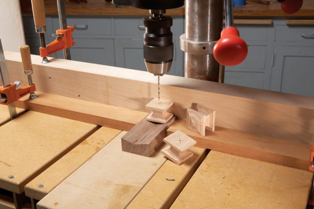 How do you support an uneven piece on the drill press? Make something that’s the opposite shape, of course. After making 60 of these knobs, I realized that the directions didn’t include any advice on drilling the holes for …
