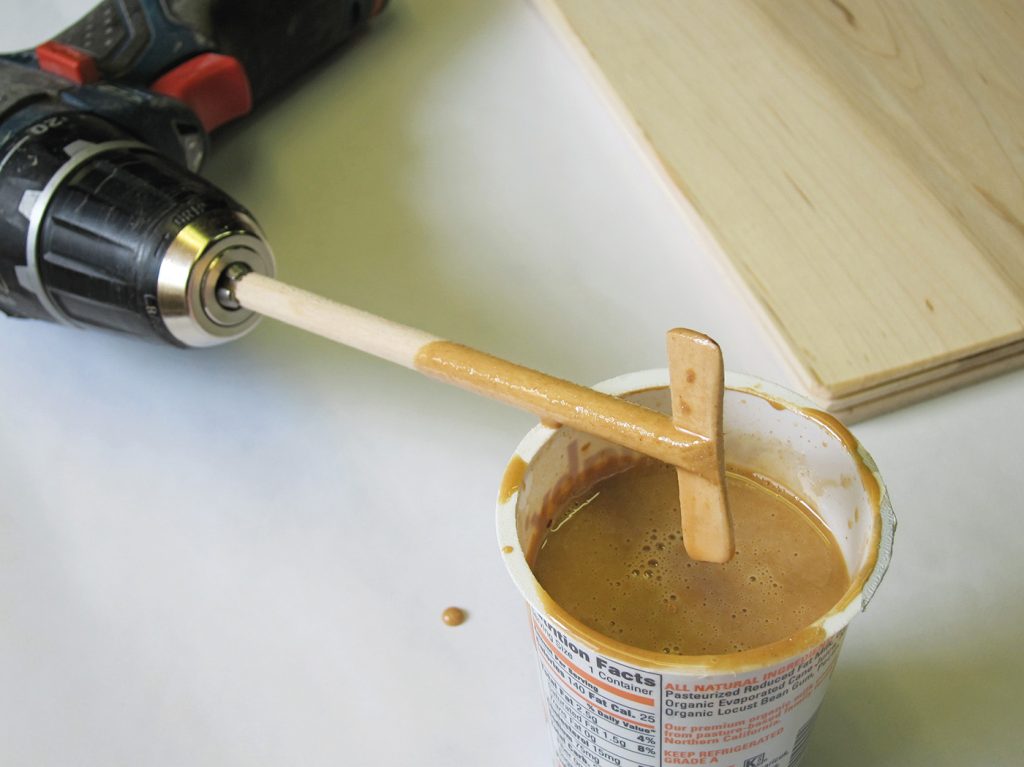 For thorough mixing, a powered paddle is the way to go. Here’s an easy way to make one from a 3/8″ dowel rod. First, cut a slot in the end of the dowel. To do this, attach a fence to …